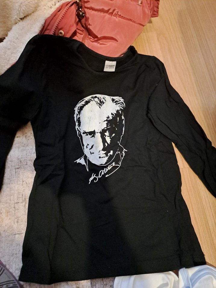 Pamuk kumaştan üretilmiş, uzun kollu, yuvarlak yakalı, baskılı siyah kadın tişörtü. Rahat kesimi ve normal boyuyla günlük sokak stiline uygundur.