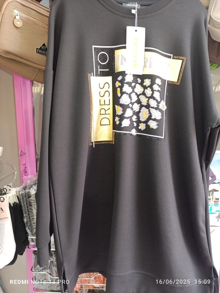 terleme tüylenme yapmaz Siyah uzun kollu, baskılı ve düğmeli detaylı salaş tunik. Yumuşak sentetik kumaştan, rahat sokak stili görünümü sunar.
