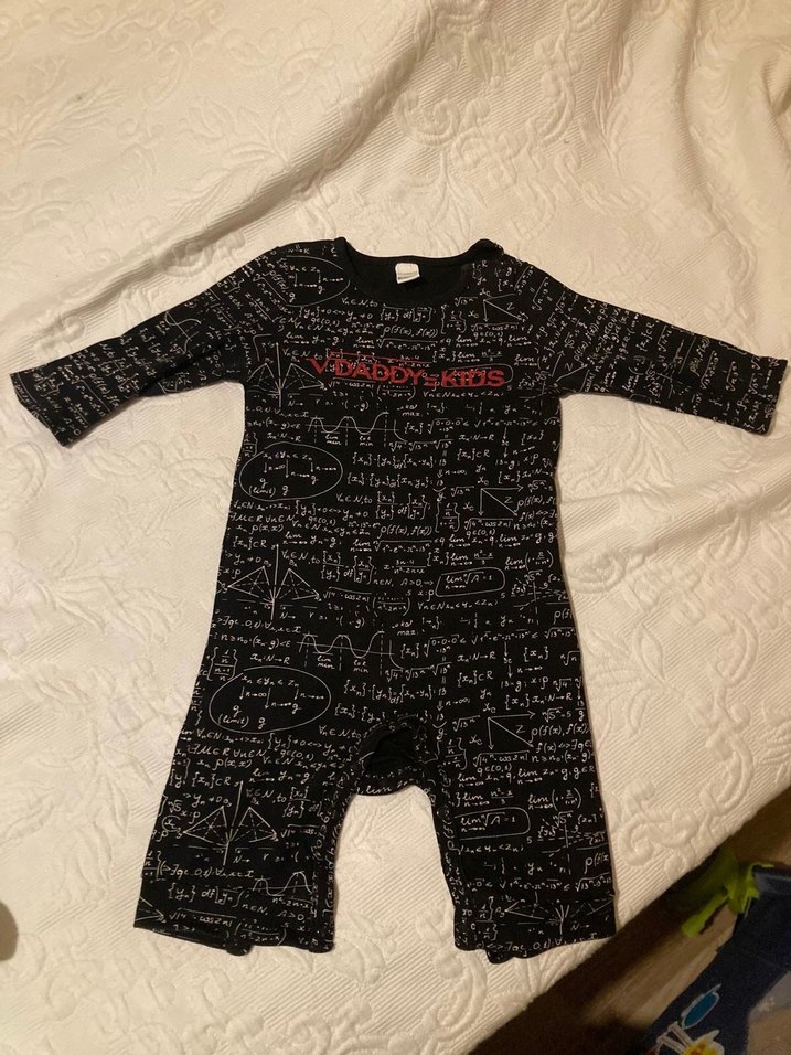 Uzun kollu, yuvarlak yaka siyah bebek tulumu. Örgü dokulu, gotik tarzda, bilimsel formüller ve kırmızı yazı detayı içerir.1 yaşına kadar da kullanılır.