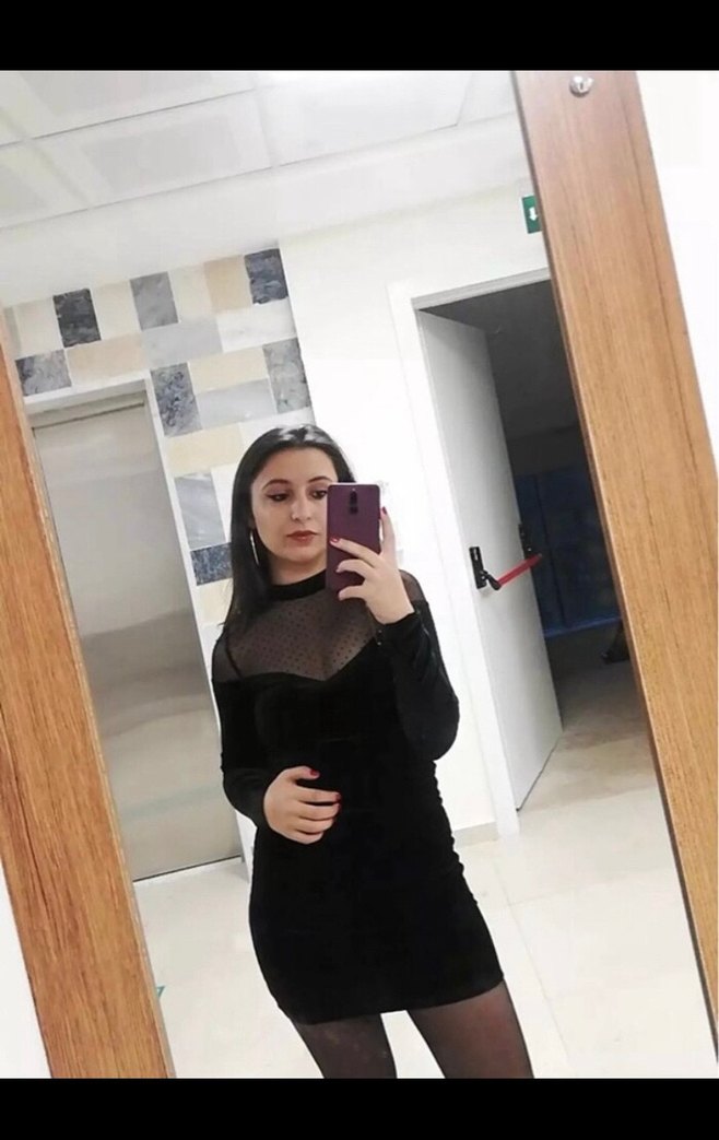 Uzun kollu, yüksek yakalı ve transparan detaylara sahip siyah, vücuda oturan midi elbise, cesur gotik tarz için uygundur.