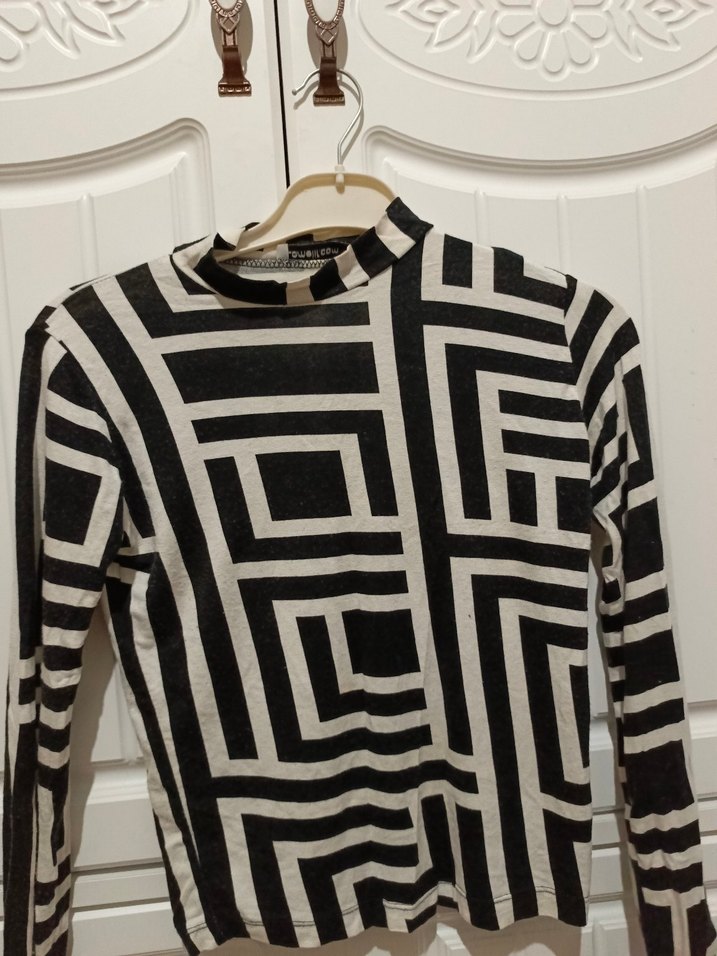 Uzun Kollu Siyah Beyaz Çizgili Kadın Bluz
