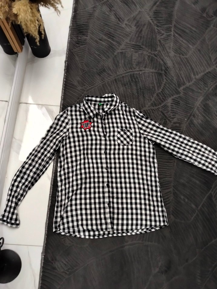 Pamuk kumaştan yapılmış, düğmeli, uzun kollu, siyah beyaz kareli, notched lapel yakalı, salaş kesim kadın gömlek, günlük ve sokak tarzına uygundur.