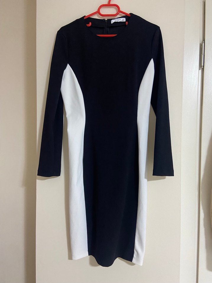 Uzun Kollu Siyah Beyaz Vücuda Oturan Elbise