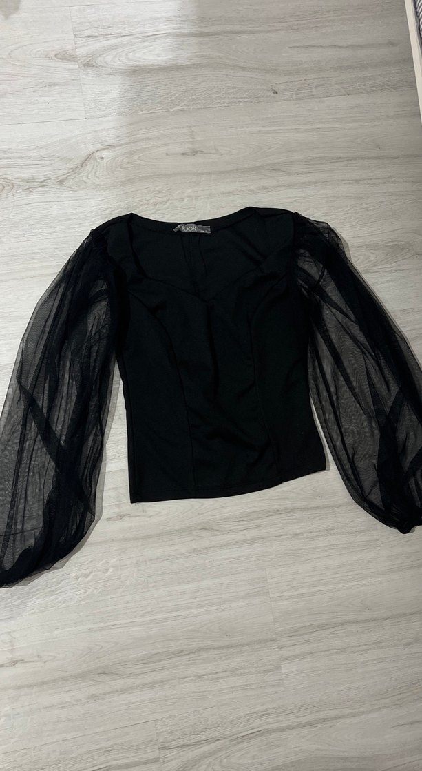 Bu siyah, v yaka ve uzun, drapeli tül kollu bluz, gotik tarzı modern dokunuşla birleştirir. Pürüzsüz sentetik kumaştan üretilmiştir ve günlük kullanım için uygundur.