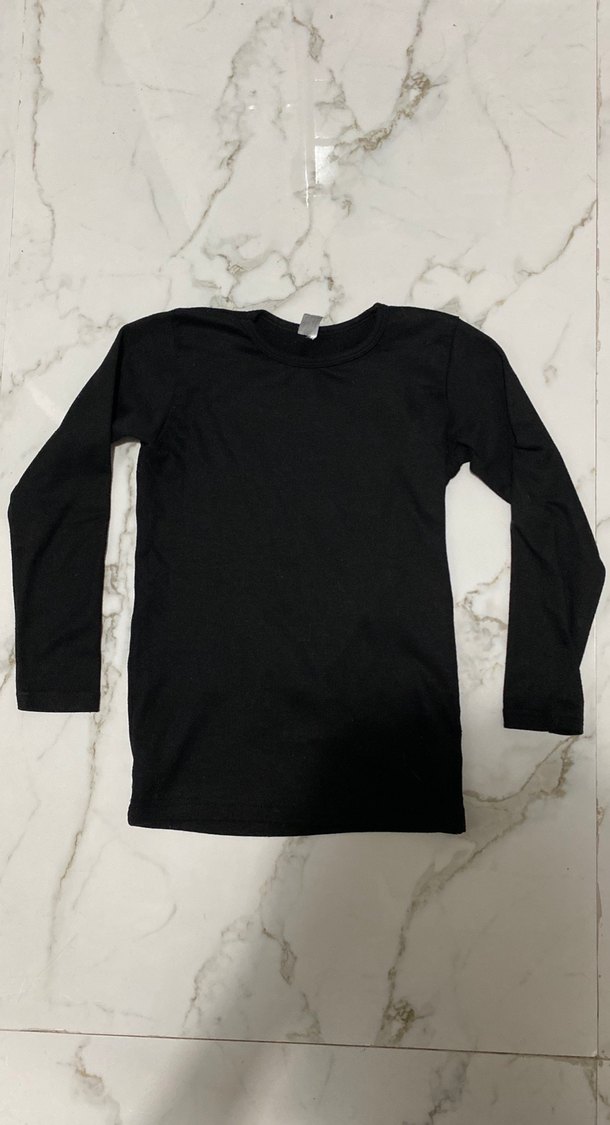 Uzun kollu, desensiz siyah çocuk içlik, yumuşak kumaştan üretilmiştir ve rahatlık sağlar.