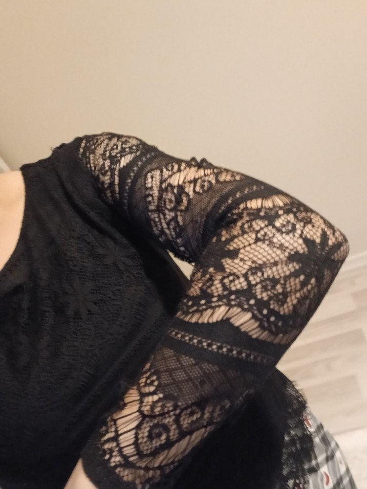 Bu siyah dantel bluz, uzun kollu ve bisiklet yaka olup, gotik Paris tarzını yansıtan günlük kullanıma uygun bir üründür.