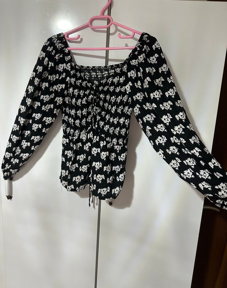 Uzun kollu, tekne yaka önü lastikli bluz 42/44 beden uyumlu