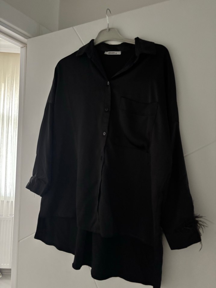 Uzun Kollu Siyah Dökümlü Kadın Gömlek