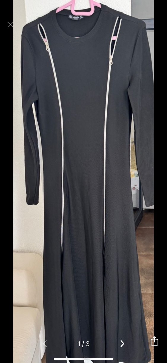 Siyah uzun kollu, yuvarlak yaka, fermuar detaylı esnek çok hoş duran bir elbise 40-42 beden uyumlu iki kez giyildi
