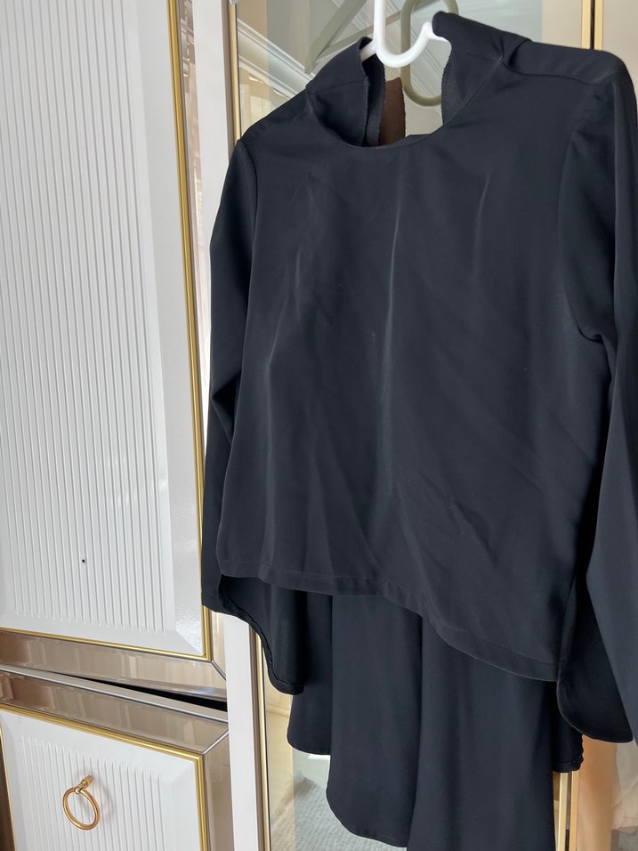 Uzun kollu siyah etekli takım şalıyla birlikte göndericem