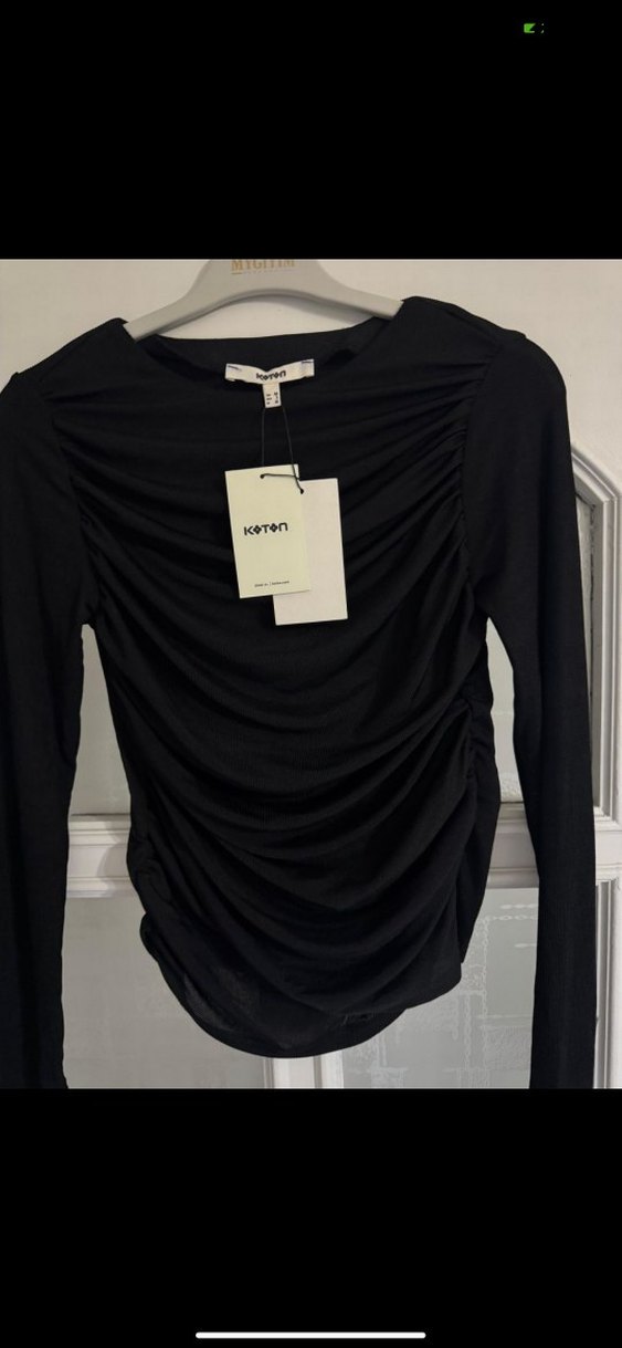 Uzun kollu, bisiklet yakalı, drapeli tasarıma sahip siyah, vücuda oturan bluz.Hiç giyilmedi.Etiketli üründür.