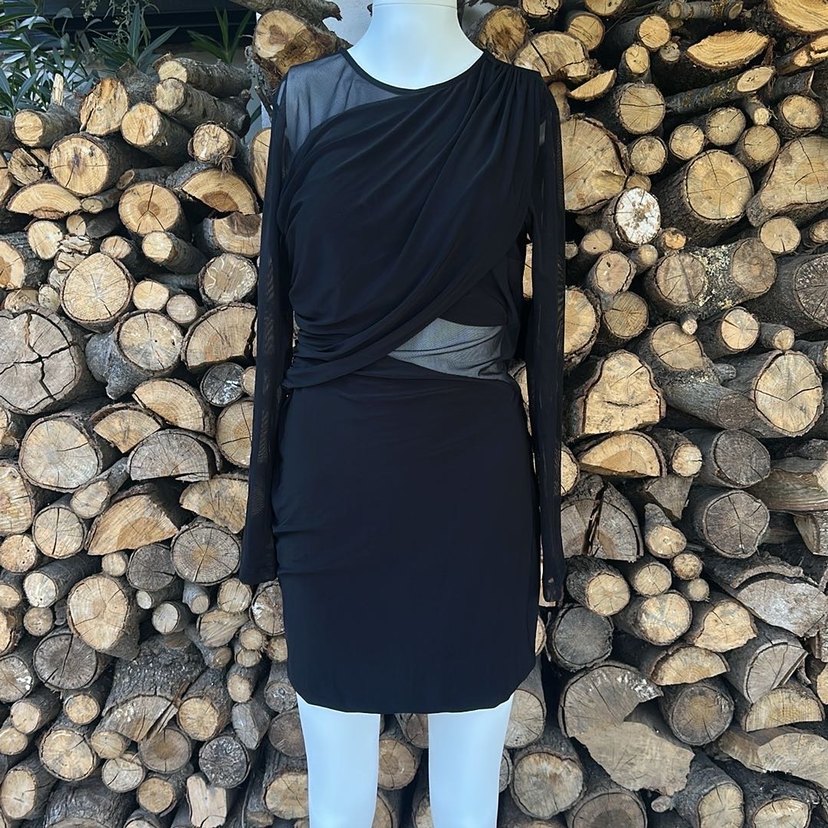 Uzun Kollu Siyah Drapeli Kadın Elbise