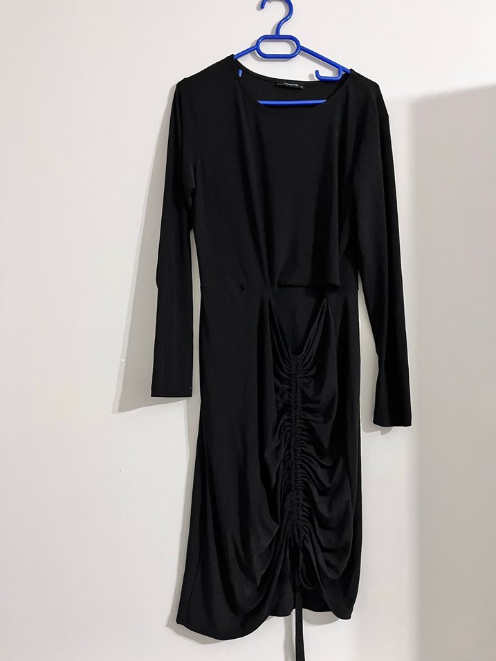 Uzun Kollu Siyah Drapeli Kadın Elbise