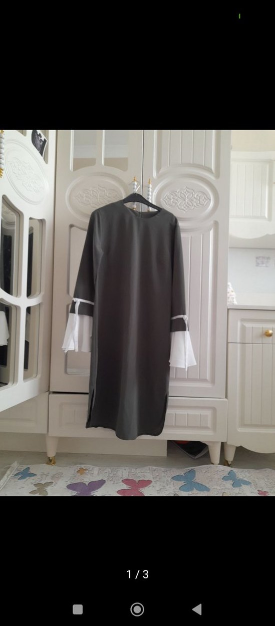 Uzun kollu, drapeli ve beyaz volanlı manşetlere sahip siyah tunik. Bisiklet yaka ve regular kesim ile minimalist goth tarzında ofis kullanımı için uygun. Fakat küçük bir leke var