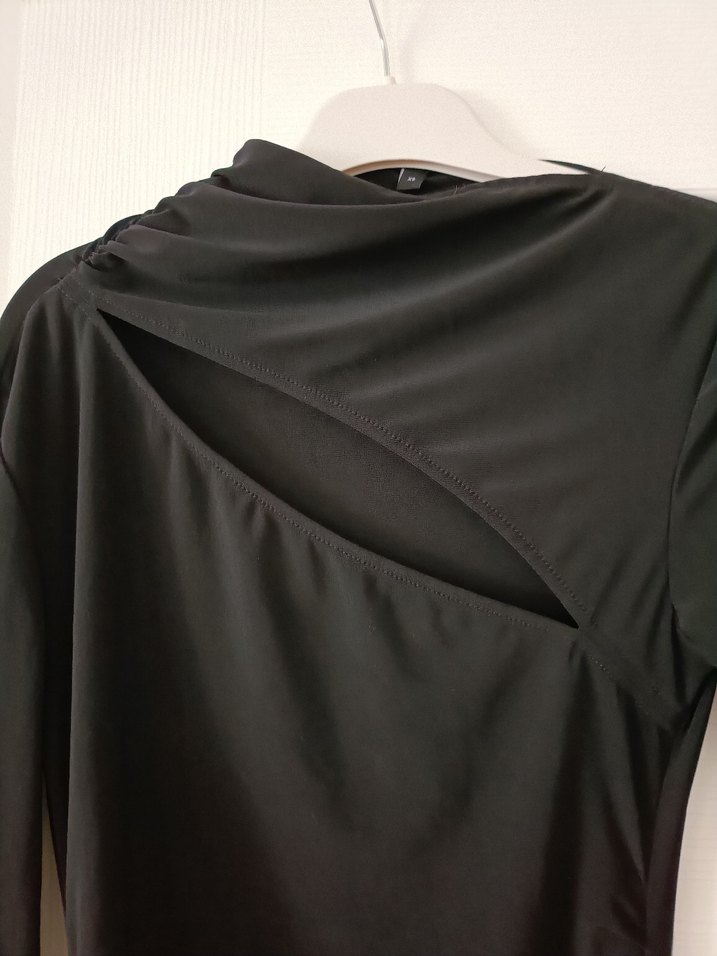 Bu dar kesim, yüksek yakalı ve uzun kolludur. Siyah, pürüzsüz sentetik kumaştan olup drapeli tasarıma sahiptir. Ofis için goth tarzına uygun.