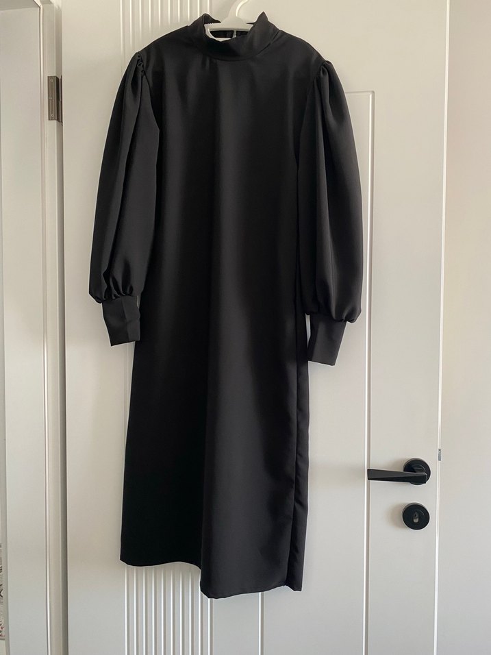 Siyah uzun elbise, yüksek yakalı ve uzun kolludur. Regular kesimdir. birkaç saatliğine giyildi.Özel dikimdir.