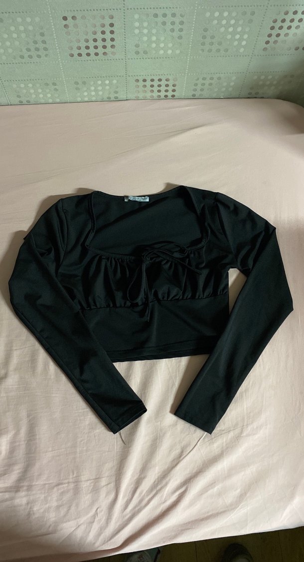 Bu siyah, uzun kollu ve tek renkli bluz, düz kesimiyle dikkat çeker. Fırfır detayları ve tekne yaka tasarımıyla minimalist ve şık bir görünüm sunar.