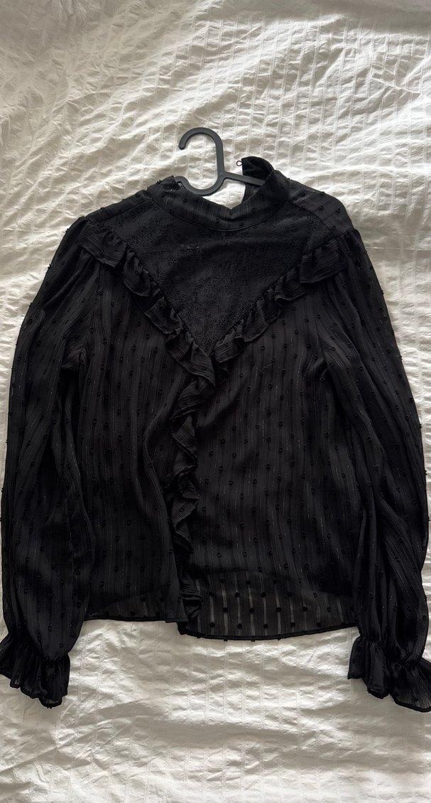 Uzun Kollu Siyah Fırfırlı Gotik Bluz