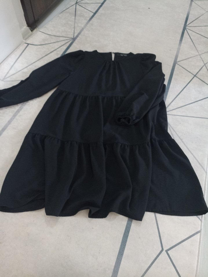 Uzun Kollu Siyah Fırfırlı Salaş tunik