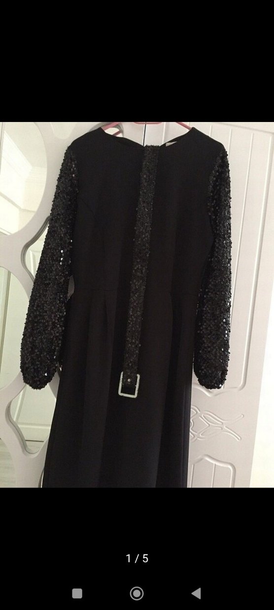 Ölçüleri son görselde eklenmiştir. Uzun kollu dokulu kolları ve kemerli beliyle siyah gotik tarzda, modest kesimde uzun gece elbisesi. Crew yaka detaylı.
