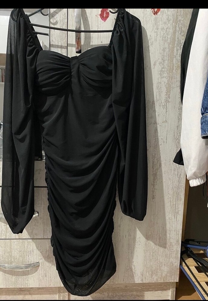 Uzun Kollu Siyah Elbise