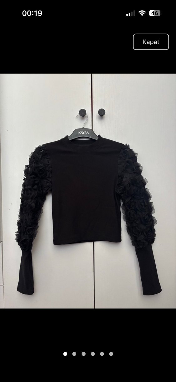 Uzun Kollu Siyah Gotik Fırfırlı Bluz