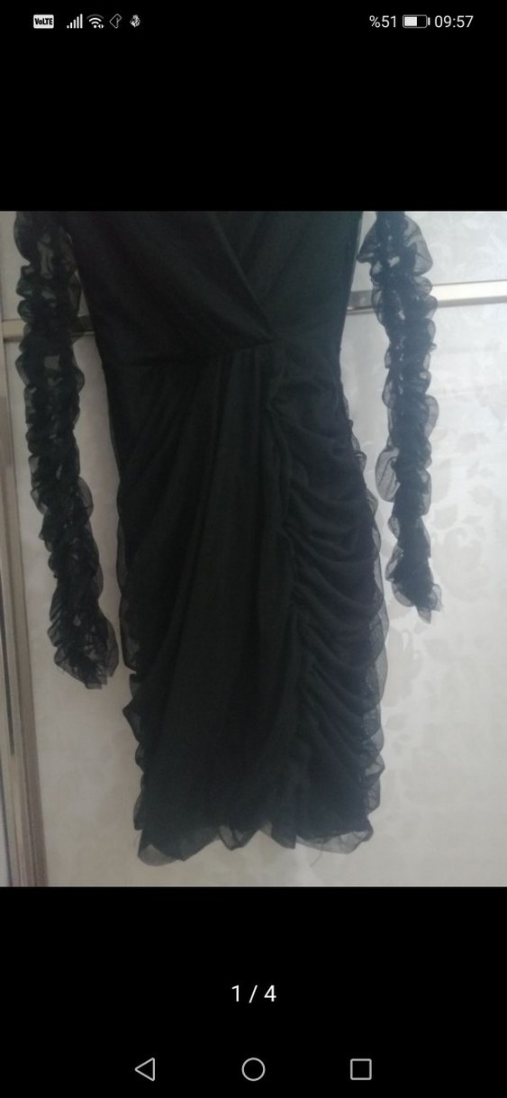Uzun Kollu Siyah Gotik Fırfırlı Elbise