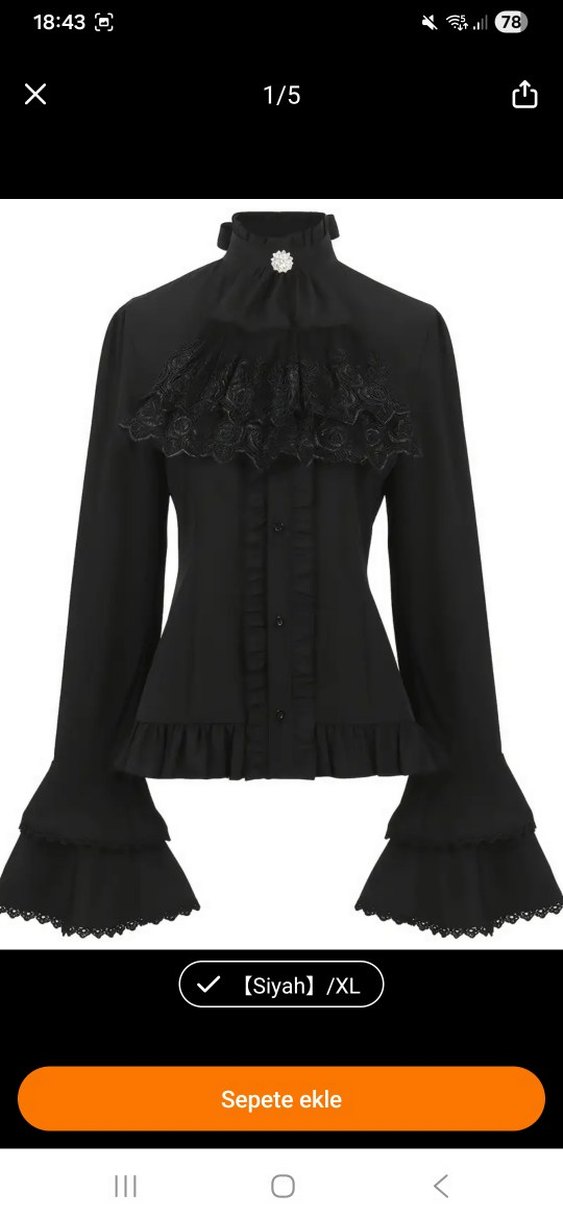 Uzun kollu, yüksek yakalı, fırfır detaylı siyah gotik gömlek. Nakışlı dantel desenlere sahip, hemen teslim l xl xxl bedenlere uygun. arka korseli ayarlanabiliyor. yurtdışı ürün hemen teslim