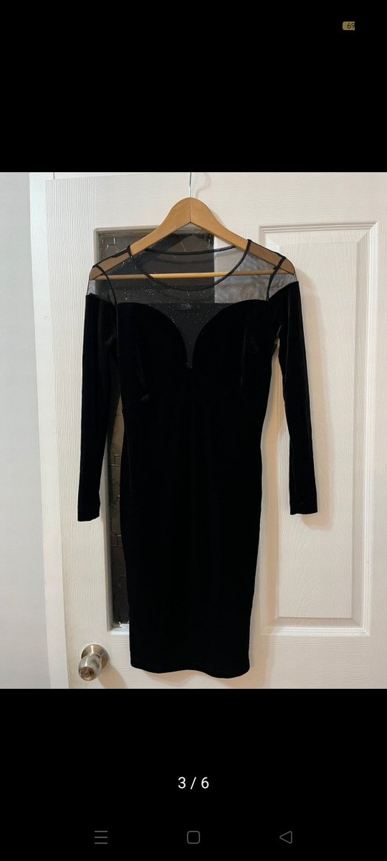 Bu siyah uzun kollu, v yaka, drapeli gotik tarz elbise, romantik akşamlar için cesur bir tercih. Vücuda oturan kesimiyle şık ve dikkat çekici.