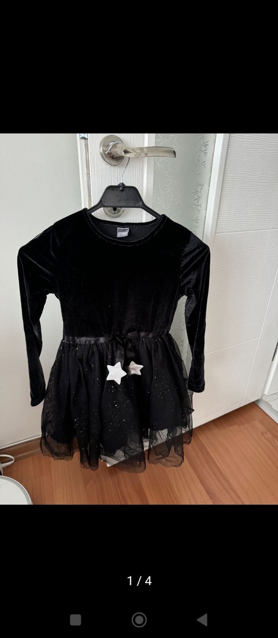 Siyah, uzun kollu, dar kesim gotik kız elbisesi. Yuvarlak yaka ve etek kısmında fırfır detaylı, yumuşak sentetik kumaştan yapılmıştır. Yıldız süslemeleri bulunur.