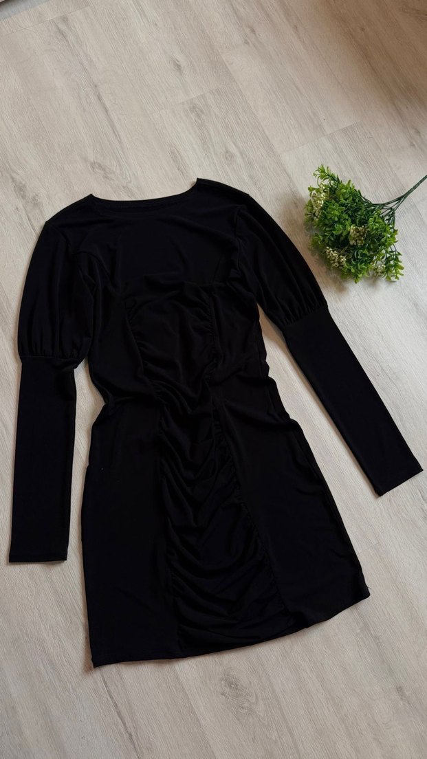 Uzun kollu, v yakalı ve drapeli detaylara sahip siyah, vücuda oturan midi elbise gotik tarza şıklık katıyor. Ürün hiç kullanılmamıştır bana olmadığı için satılıktır önleri Büzgülü balon kollu bir elbisedir çok güzeldir
