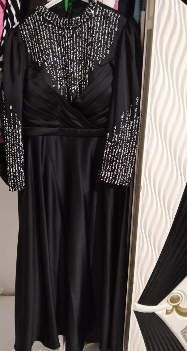 Uzun Kollu Siyah Gotik Nakışlı Abiye Elbise