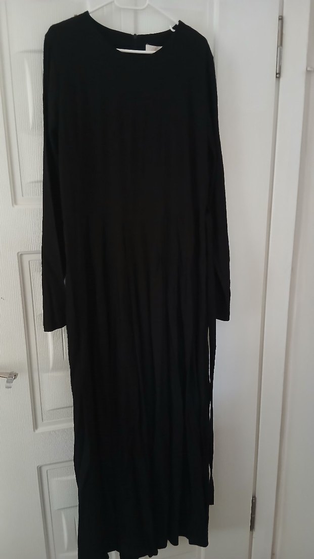 Yüksek yakalı, uzun kollu,önü pileli yazlık elbise 42 44 beden uyumlu.