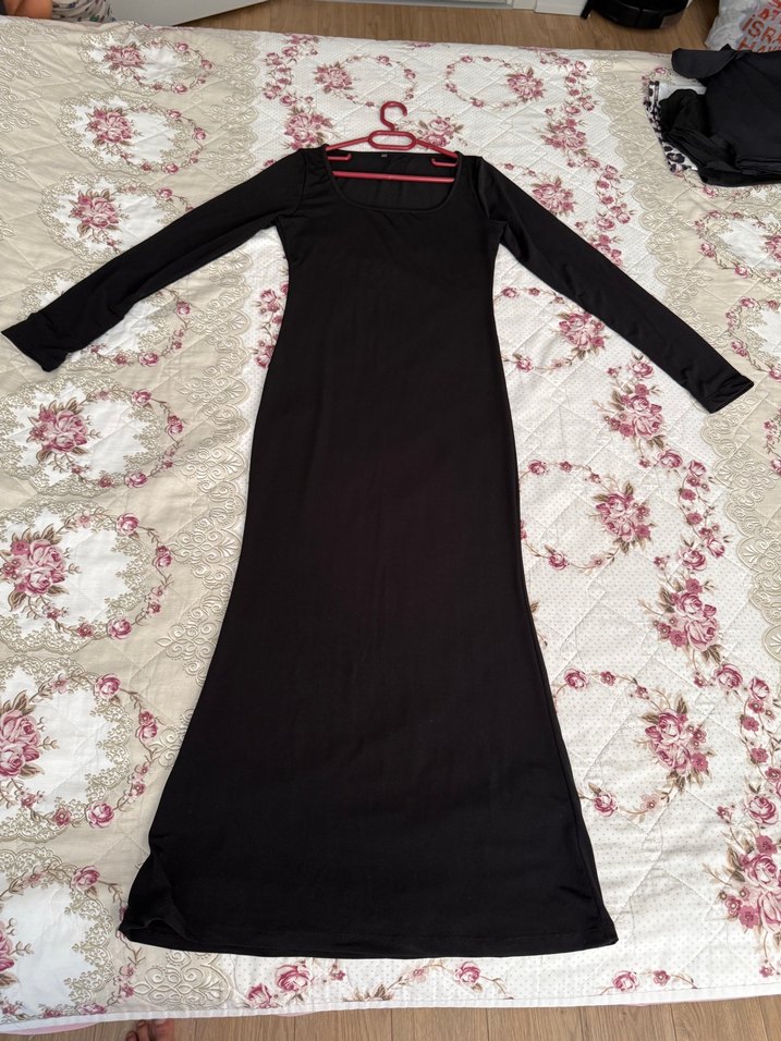 Uzun kollu, tek renk siyah uzun elbise, salaş kesimli ve tek parça görünümüyle gotik stil sunar. Syntetik kumaştan yapılmıştır.