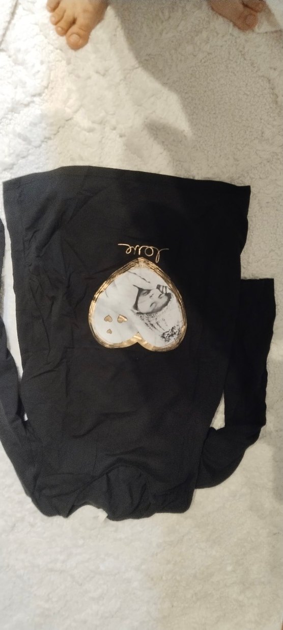Uzun kollu, simit yaka detaylı siyah hamile gömleği, önünde baskılı kalp deseniyle romantik akşamlar için uygun midi boyda ve bol kesim.