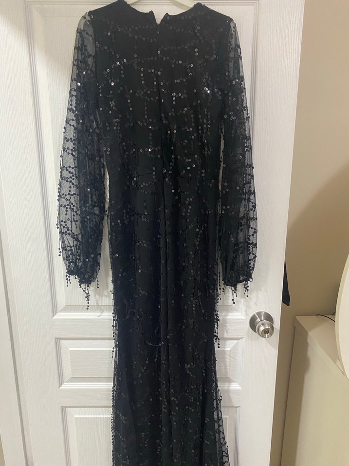 Uzun Kollu Siyah İşlemeli Gotik Abiye