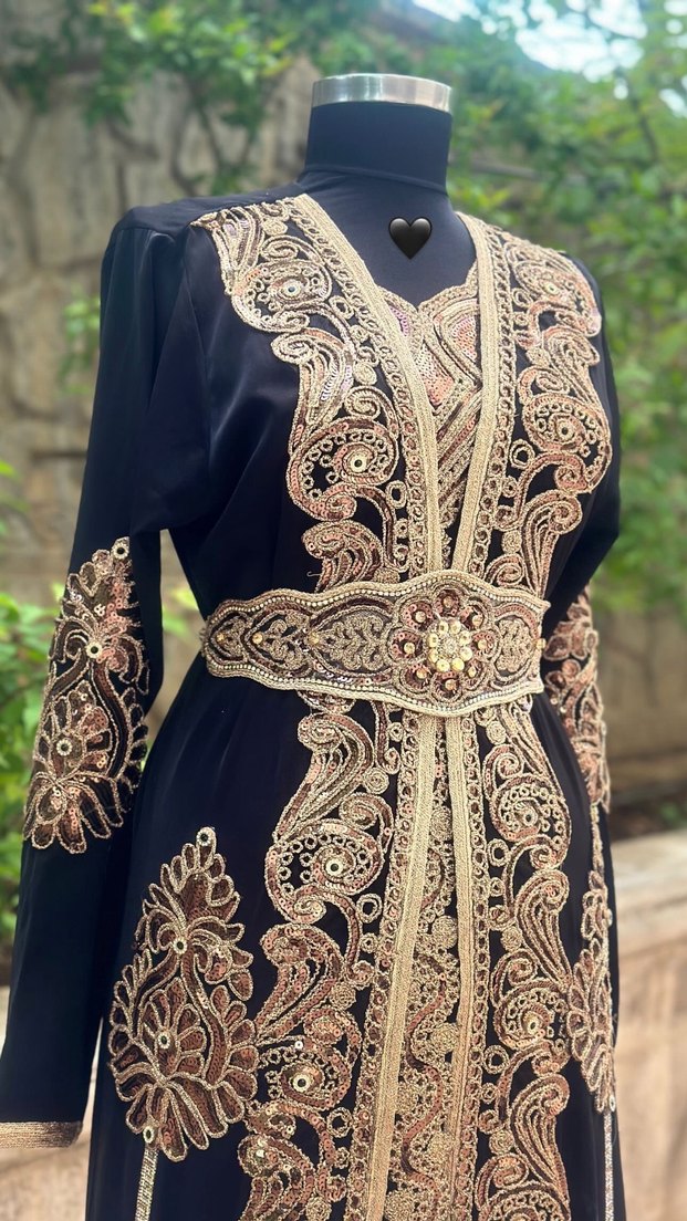 Siyah renkli bu hint elbisesi, uzun kollu ve V yakalıdır. Zarif boncuk işlemeleriyle süslenmiş, klasik şıklıkta ve düğünler için uygundur.