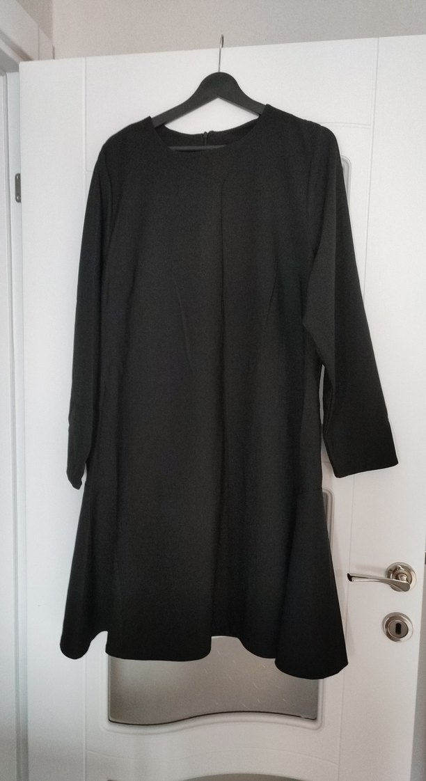 Uzun kollu, salaş kesim siyah elbise. Yuvarlak yaka ve dökümlü tasarıma sahip, sentetik kumaştan üretilmiştir. Ofis kullanımı için uygundur.