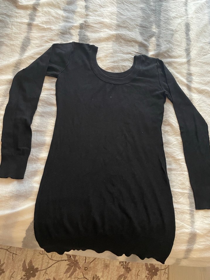 Bu siyah kadın kazağı uzun kollu ve yuvarlak yakalıdır, yumuşak yapılmıştır. İnce kesim ve midi boyda, sade ve desenizdir. Günlük kullanım için uygundur, rahat ve gotik bir tarza sahiptir.