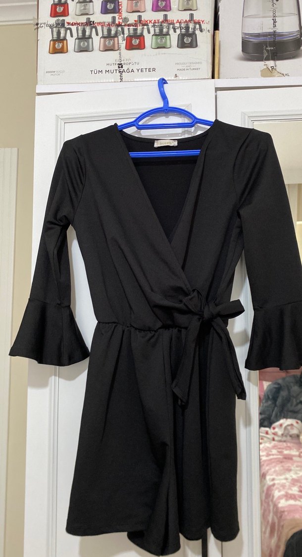 Uzun Kollu Siyah Kadın şortlu elbise