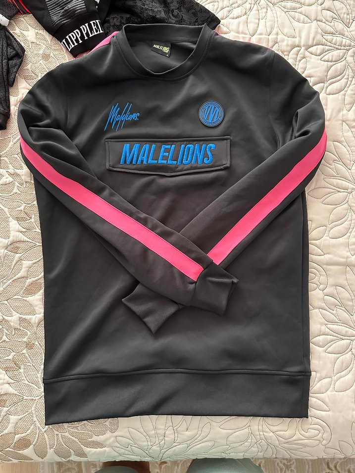 Siyah renkli, uzun kollu ve bisiklet yaka erkek spor sweatshirtü. Pembe şerit detaylı, baskılı ve cırt cırtlı tasarıma sahip. Yumuşak ve sıcak kumaştan, sportif ve sokak stili için uygun. ♂️