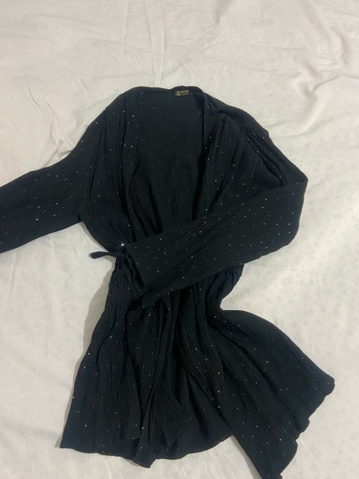Uzun Kollu Siyah Kadın Taşlı Kimono