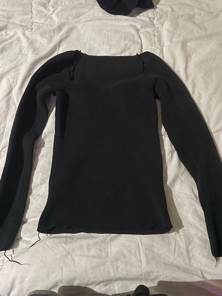 Uzun kollu, kayık yaka ve fitted kesime sahip siyah triko, yumuşak sentetik kumaştan üretilmiştir. Midi boyu ve goth tarzıyla günlük kullanıma uygundur.