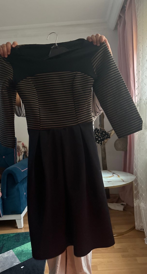 Uzun kollu, tek renk siyah midi elbise, tekne yakalı ve pile detaylı, gotik ve Paris tarzı.