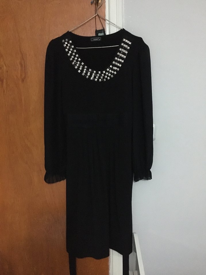 Uzun Kollu Siyah Midi Giyimli Elbise