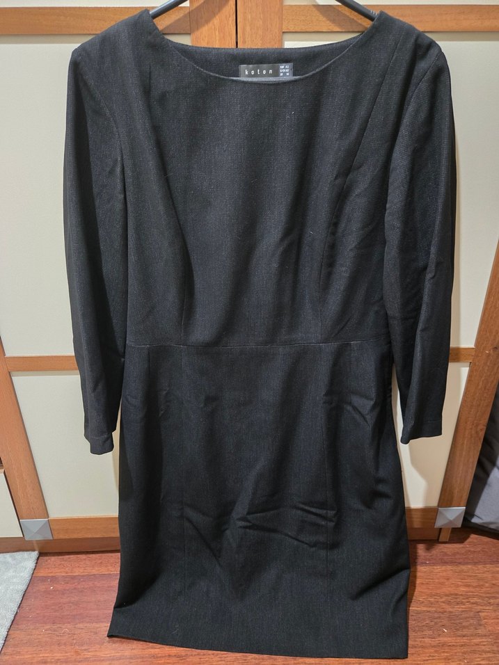 Uzun kollu, bisiklet yaka ve drapeli tasarıma sahip siyah triko elbise. iş ortamına uygun sade ve klasik tarzda.