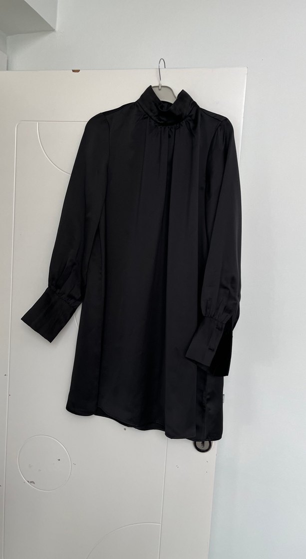 Yüksek yakalı, uzun kollu, bol kesim kadın tunik. İpeksi kumaş ve drapeli tasarım ofis için uygun şık bir parça. Yurtdışından geldi bir kere bile giymedim tertemiz hmin ürünü smoldur