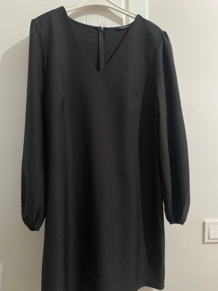 Uzun Kollu Siyah Midi V Yaka Elbise