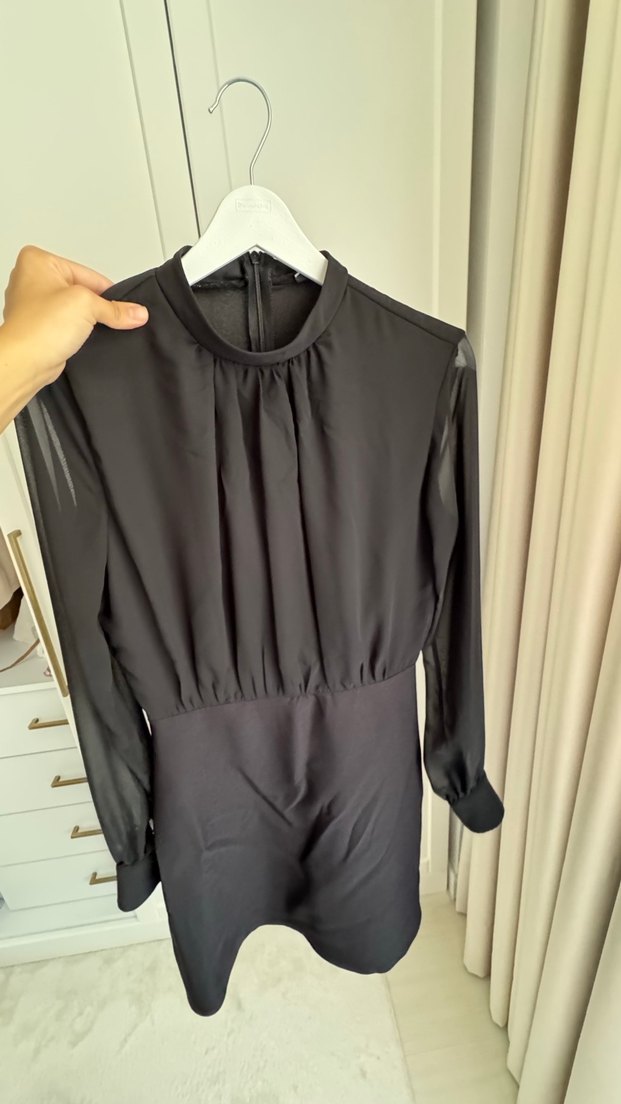 Uzun Kollu Siyah Mini Elbise