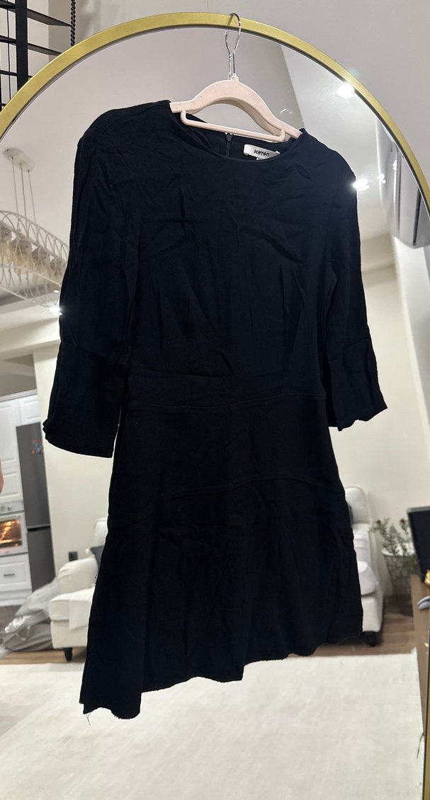 Uzun kollu ve bisiklet yakalı siyah mini elbise, goth tarzını yansıtan volan detaylara sahiptir. Günlük kullanıma uygundur. 80 boy 37 en kolaltı